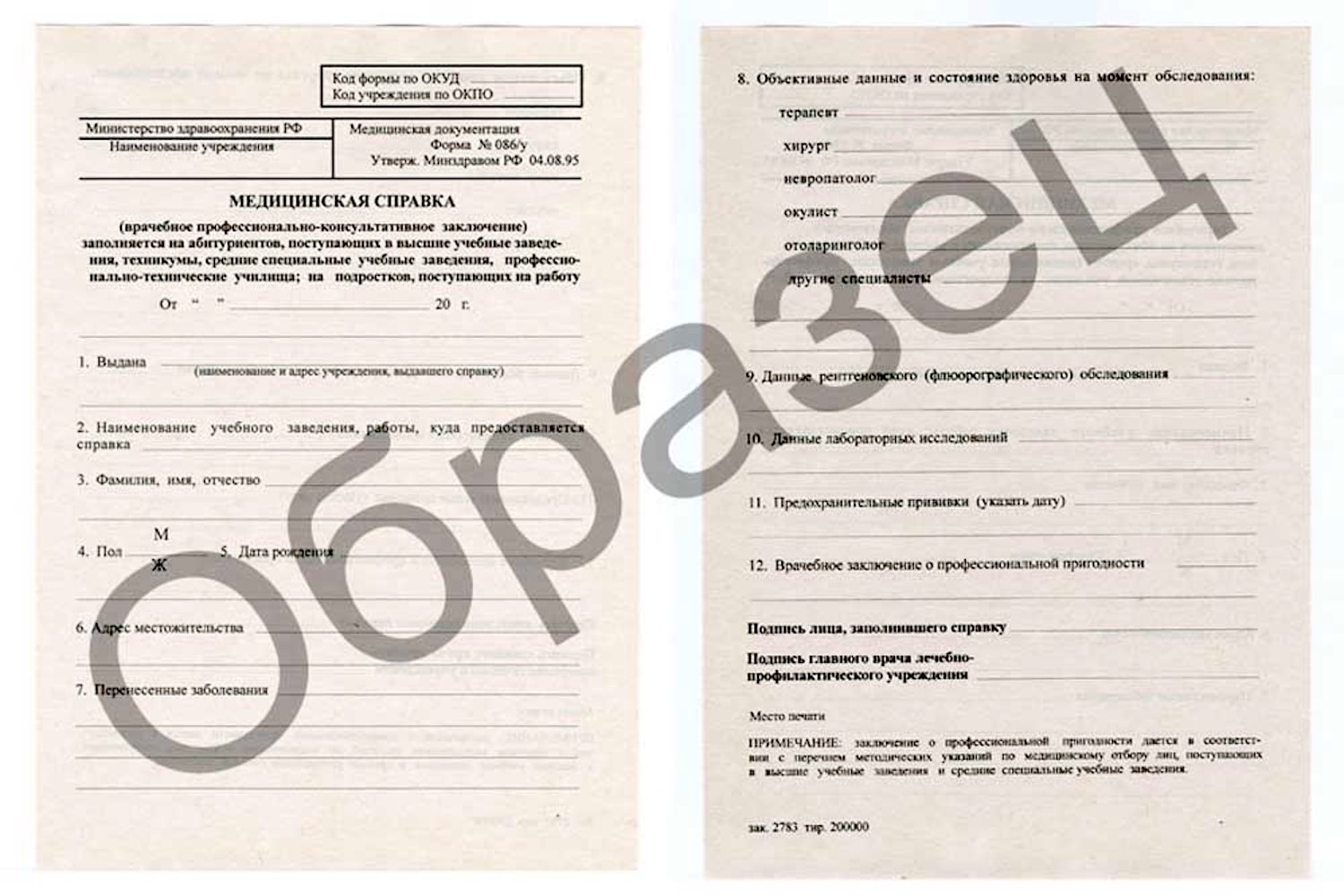 Медицинская справка формы 086у предоставляется абитуриентами при поступлении в учебные заведения и при устройстве на работу.