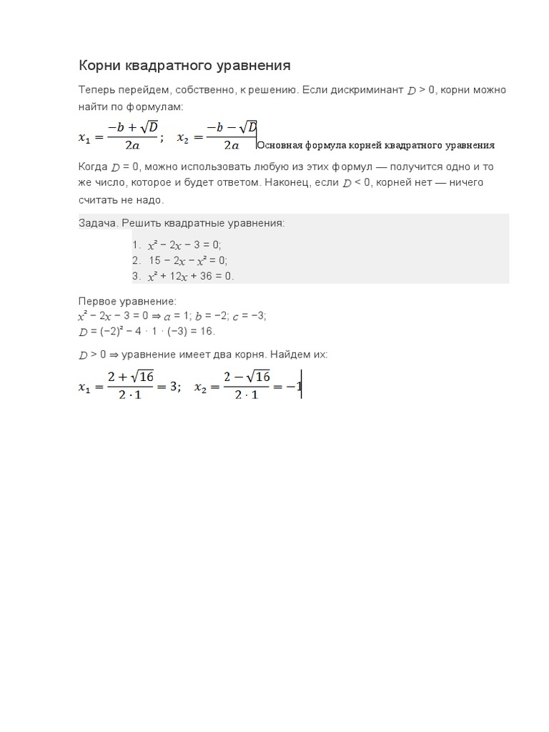 1 Формула Корней Квадратного Уравнения